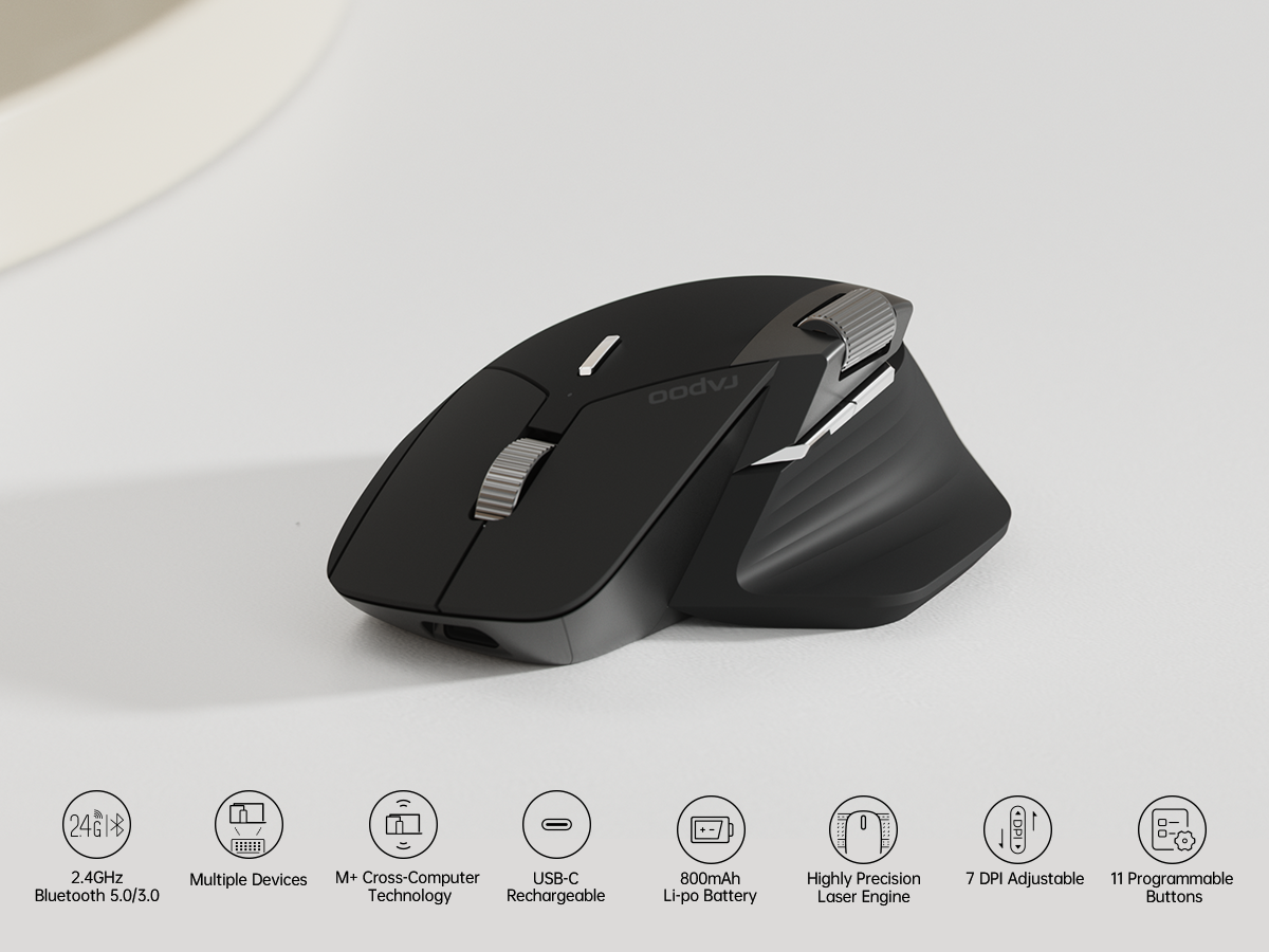 24GHz + bluetooth 3.0/5.0 tri-mode connectivity the only one mouse that supports 4 devices on the market.