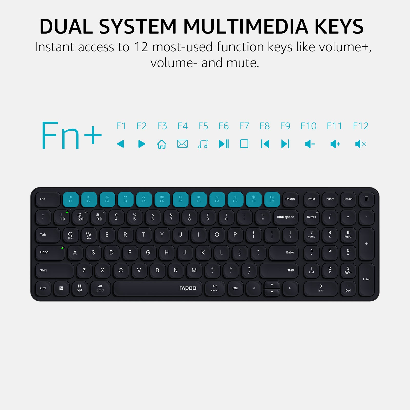 • Multimedia Keys: Support Windows and Mac OS dual system shortcuts to 12 widely used function keys like play/pause, volume+/- and more.