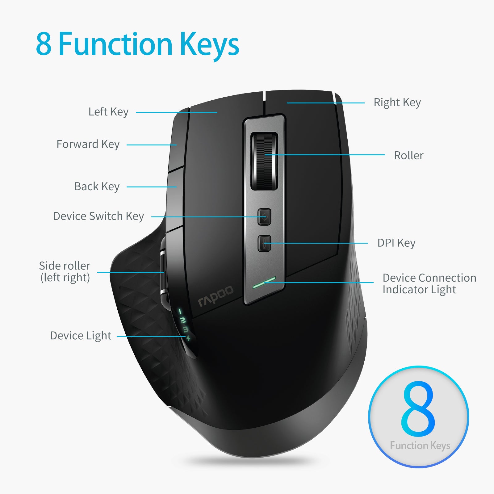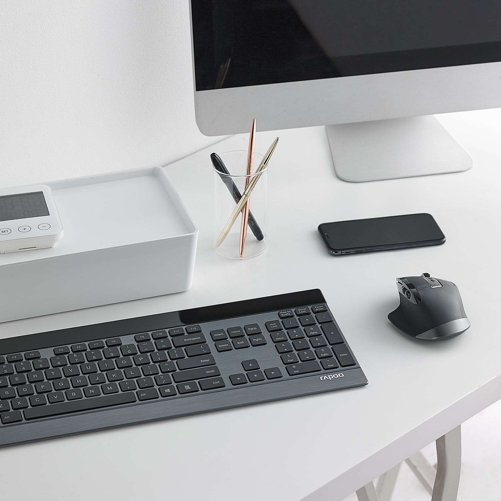 - 【Multi-device Connection Wireless Keyboard Set】RAPOO 9350M both the mouse and the keyboard can be connected via Bluetooth and 2.4G USB receiver. You can free to switch Keyboard by FN+1/2/3 between 4 devices. The device can be switched by the Bluetooth button at the bottom of the mouse; it is very suitable for people who use multiple devices for office work.