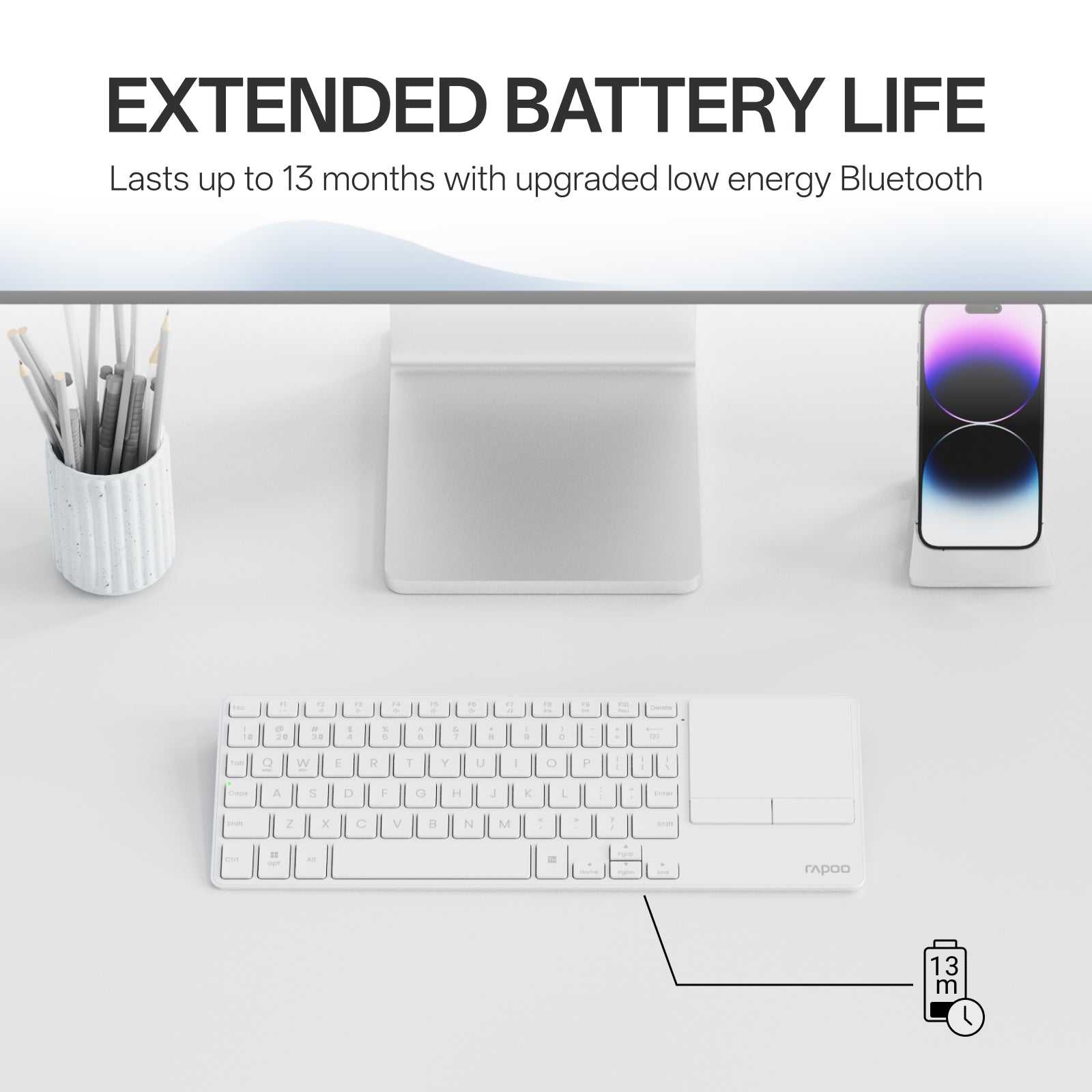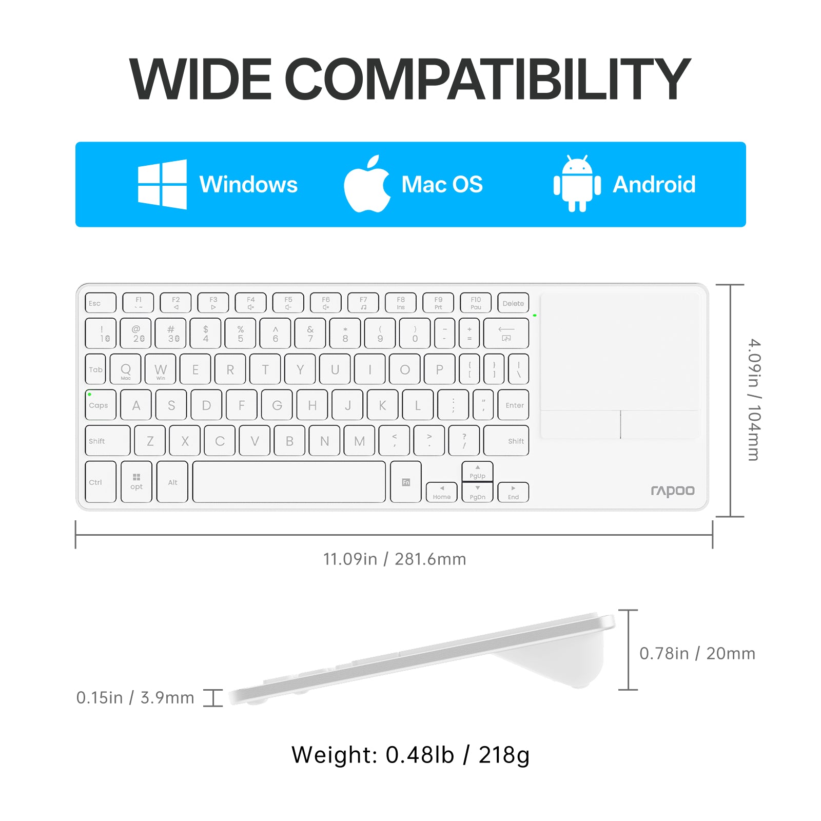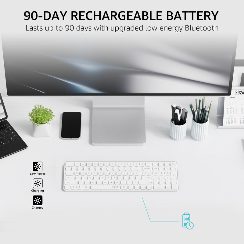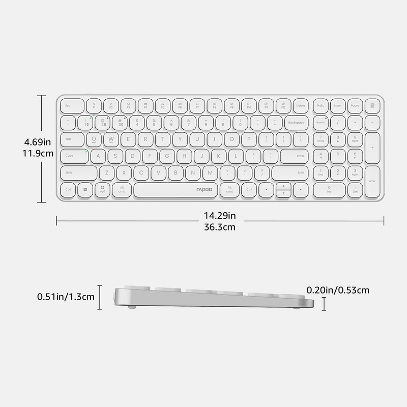 • Quiet and Comfortable: Featuring RAPOO’s classic blade-series ultra-thin design, E9350L delivers a fluid, precise and quiet typing experience at a natural angle for your wrist --- thanks to its 0.2-inch thickness that contributes less wrist strain, making extra palm rest no longer needed.