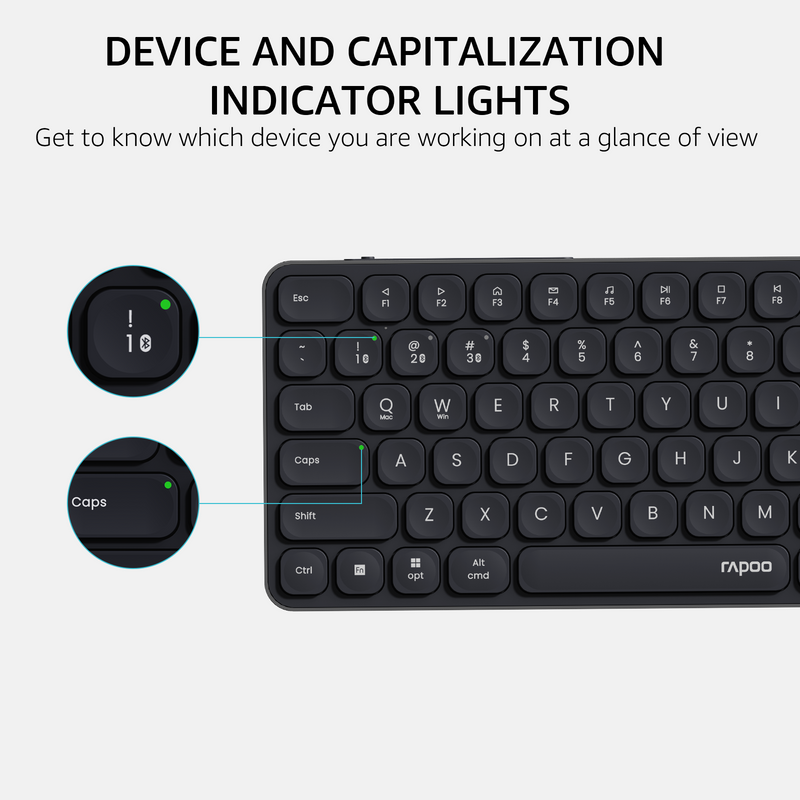 • Refined Details from Customer Voice: The latest version has added device and capitalization indicator lights for making it easier to find which device you are typing on, and eliminating the inconvenience caused by not knowing the uppercase or lowercase; What’s more, we’ve also added a battery indicator for better power management.