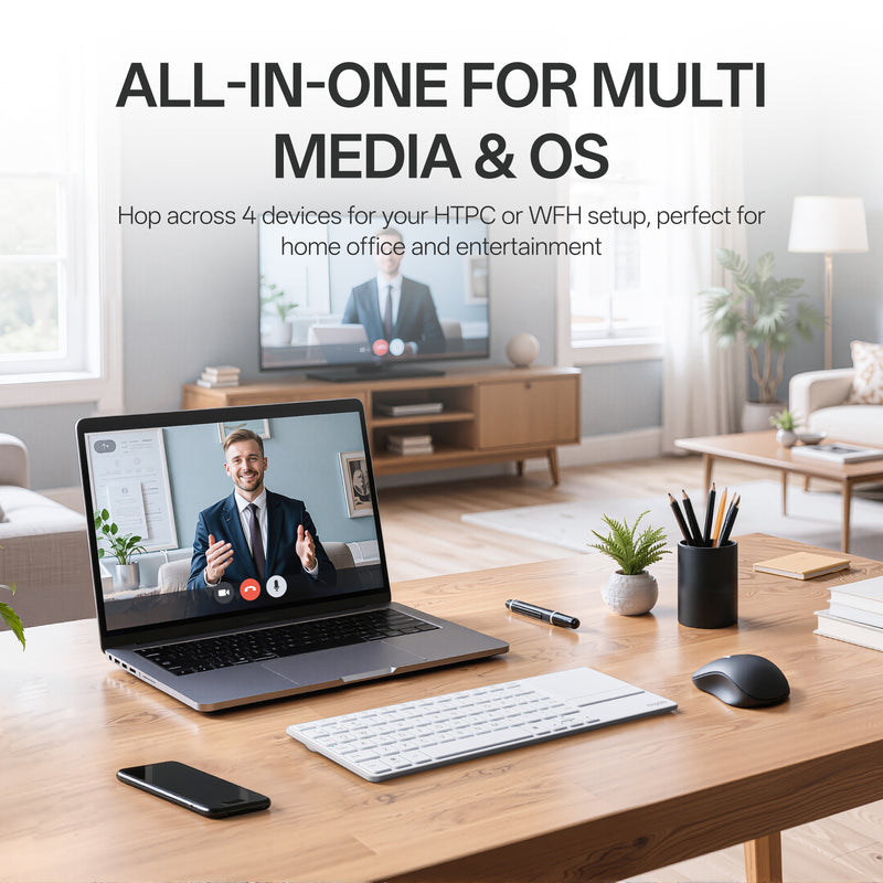 • Multi-Device and Multi-OS Wireless: Seamless switching between 4 devices such as laptop, desktop computer, tablet or smartphone without hassle of swapping and reconnecting the keyboard back and forth.