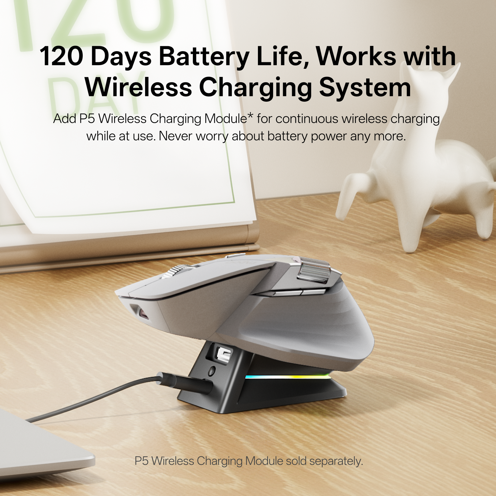 Add P5 Wireless Charging Module* for continuous wireless charging